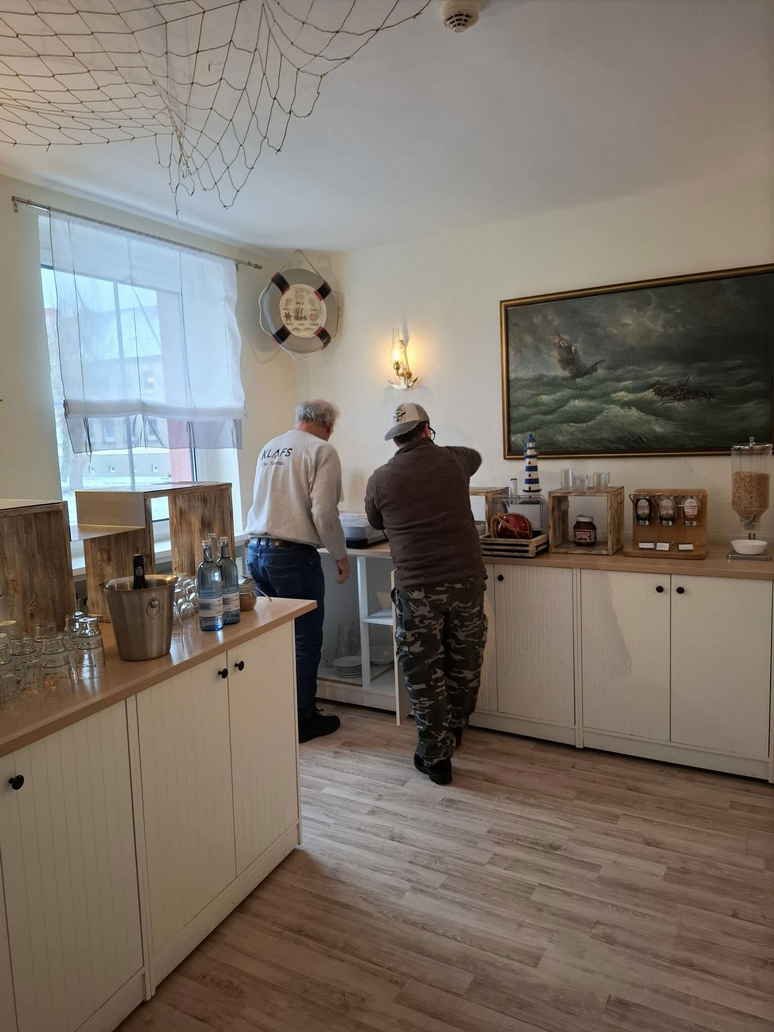 Das Personal der Peenemünder Zwiebel baut das kalt / warme Buffet auf...